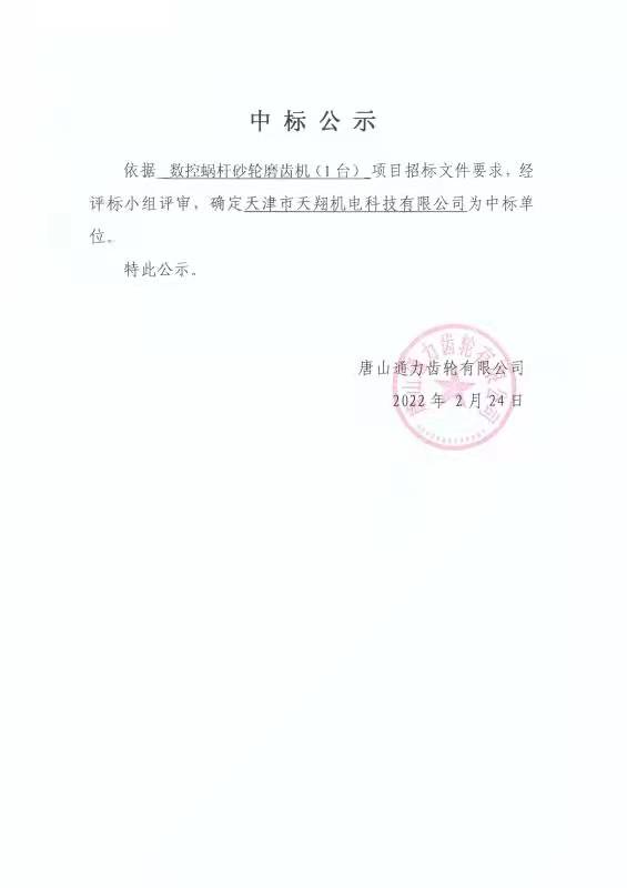 唐山通力齿轮有限公司中标公告